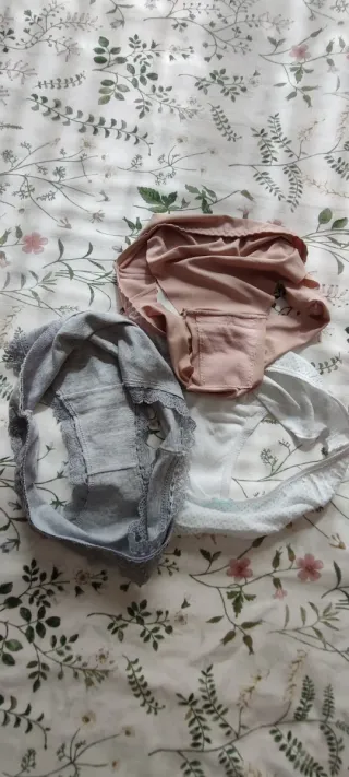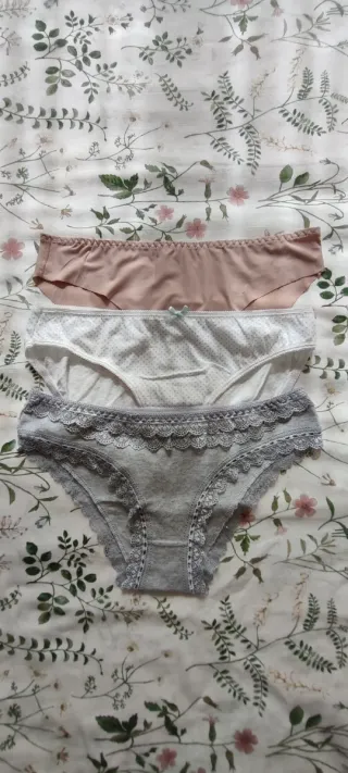 Lote de 3 bragas sin estrenar sin etiqueta. La color visón invisible sin costura. 🎁 5 bragas y 6 tangas con alguna puesta. Todas entre tallas S y M. Ver fotos. Envío con In Post.