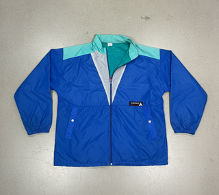 Chaqueta ligera de estilo vintage con un diseño llamativo. - Cierre completo con cremallera. - Cuello alto con ribete. - Bolsillos frontales con cremallera. - Detalle de logo en la manga. Auténtica joya vintage!
