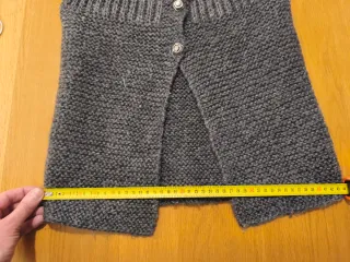 Chaleco de punto de lana de estilo vintage. Presenta un diseño abierto en la parte delantera con dos botones. - Cuello con solapa. - Manga corta. - Tejido de punto grueso.