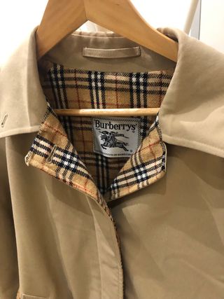 Gabardina clásica de la marca Burberrys, un icono del estilo old money. - Diseño atemporal. - Detalle del icónico estampado Nova Check en el forro y cinturón. - Color beige versátil.