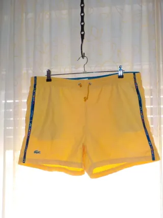 🐊 SHORTS LACOSTE AMARILLOS 🏖️ ¡El toque de color que tu verano necesita! ✨ Marca: Lacoste Original 💛 Color: Amarillo vibrante (¡perfecto para destacar!) 📏 Talla:5 (L Grande ) 🩳 Tipo: Shorts/Bañador con banda lateral signature ✅ Banda lateral con logo Lacoste repetido ✅ Cocodrilo bordado icónico ✅ Cordón ajustable en cintura ✅ Bolsillo trasero ✅ Tejido ligero y cómodo