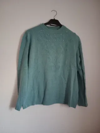 Jersey de punto para mujer con un bonito diseño bordado en la parte delantera. - Diseño floral con pequeños detalles. - Cuello redondo.