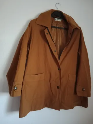 Abrigo estilo vintage de la marca Workwear Mark. Logo frontal: RAME. Color marrón. Talla XL. Cierre de cremallera frontal. Bolsillos delanteros. Cuello alto. Puños cerrados. Tiene pequeños desgastes del uso (se ven en las fotos) Medidas: Hombro-hombro 55cm, Axila-axila 64 cm Largo 79 cm, brazo 64 cm