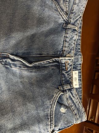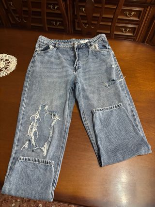 Vaqueros de estilo desgastado con diseño roto. - Diseño con rotos en la parte delantera. - Pierna ancha. - Cintura alta.