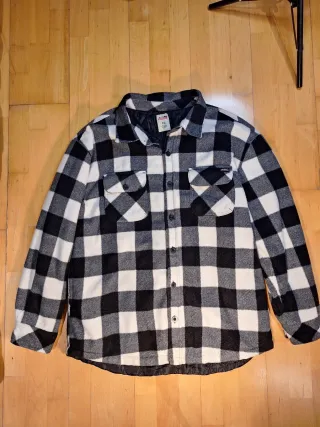 🧥 Chaqueta / sobrecamisa Dickies acolchada – Talla XL 🖤 Cuadros en blanco, negro y gris estilo leñador 🔥 Interior acolchado para mantener el calor 📏 Talla XL, corte cómodo y amplio 🎒 Dos bolsillos frontales con botón, prácticos y seguros ✨ En muy buen estado, sin desperfectos 🧵 Tejido 100% poliéster, resistente y duradero 🌲 Ideal para días fríos, trabajo o estilo casual 📦 Envío rápido