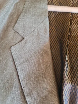 Oportunidad. Americana máx calidad Charles Minto, completamente nueva y sin uso. Color ocre/tabaco muy elegante y versátil. Estado: Impecable, sin uso (conserva la estructura de sastre original). Tejido Premium: Exterior 100% Lino natural. Forro 100% Rayón con diseño micro-check (máxima transpirabilidad, nada de poliéster). Talla: 54 (Equivale a una XL amplia o 44 US/UK). Precio en tienda 250€ Ideal para eventos de verano o un look "smart casual" de alta gama. El lino es un tejido noble que nunca pasa de moda. Envío inmediato. ¡Aprovecha el estreno!