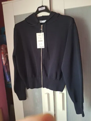 Sudadera negra de Zara con cremallera frontal y capucha. - Tejido de punto. - Puños y bajo elásticos. - Cierre completo con cremallera metálica.