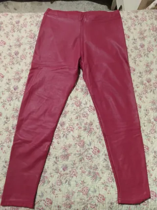 Pantalones de corte recto sin estrenar color mostaza pone talla XL pero sirve para una M-L aunque estira y también serviría para la XL - Material efecto piel liso. - Cintura elástica.