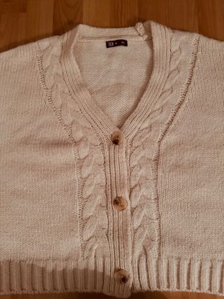 Cárdigan de punto con diseño trenzado. - Cuello en V. - Cierre de botones. - Puños y bajo de canalé.
