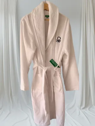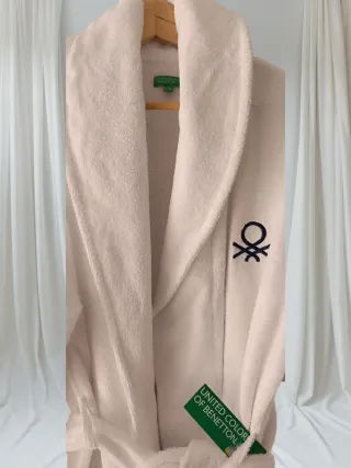 Bata de United Colors of Benetton, talla L/XL, a estrenar y con etiquetas. Medidas: Hombros 53 cm Axila a axila 60 cm Largo 117 cm Cadera 63 cm - Color blanco - Unisex - Logo de la marca bordado en el pecho. - Cinturón para ajustar. - Dos bolsillos delanteros. #albornoz #nuevo #benetton #regalo #navidad #unisex #bata
