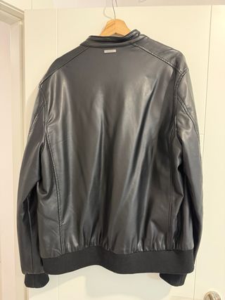 Chaqueta estilo bomber de Guess en color negro. Presenta un diseño moderno con cuello redondo y detalles de perforaciones en los hombros. - Cierre de cremallera frontal. - Bolsillo con cremallera en el pecho. - Puños y bajo elásticos. - Forro interior acolchado. Artículo usado pero muy bien conservado. Tiene un micro desperfecto que se puede ver en la foto 7. Apenas se nota, es pequeño.