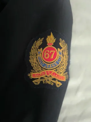 Chaqueta estilo caban de Ralph Lauren en color azul oscuro y talla XL (medidas en fotos). Prenda sin forro con detalles estilo varsyty / militar. Cierre de doble botonadura, abertura trasera, charreteras en los hombros y dos bolsillos delanteros verticales . Parche bordado de RL en la manga. Excelente estado, casi sin uso. (R1959)