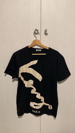 Camisa negra de Kenzo con un llamativo diseño abstracto en color crema. - Estampado gráfico distintivo. - Detalle de PARIS en la parte inferior.