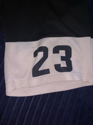 Pantalones cortos deportivos con un diseño moderno y llamativo. - Combinación de colores blanco y negro. - Detalle del número 23 en uno de los bajos. - Cintura elástica para mayor comodidad.