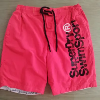 Bañador de la marca Superdry en color rosa vibrante. Diseñado para comodidad y estilo. - Cintura elástica con cordón ajustable. - 54 cms de lardo desde la cintura. - Bolsillos laterales y uno trasero.