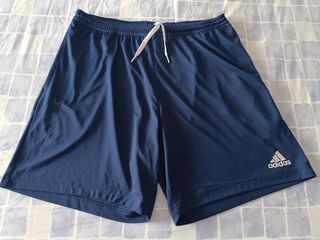 Shorts Adidas de color azul marino, talla XL. Están en muy buen estado, sin apenas señales de uso. - Ideales para la práctica deportiva. - Tejido ligero y transpirable. - Cintura elástica, bolsillos y con cordón para un ajuste cómodo. - Aeroteady, super cómodo.