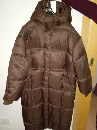 Chaquetón largo de Primark con capucha, ideal para protegerte del frío y la lluvia. DOS TALLA, XL Y M. PRECIO EN TIENDA 46€ COLOR MARRON CHOLATE. LIGERO. - Diseño acolchado. - Cierre de cremallera. - Bolsillos laterales.