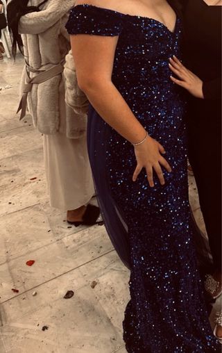 Vestido de noche de Shein, talla 2XL, de pedreria, lentejuelas y saten, totalmente nuevo con etiquetas como se ve en las fotos, tiene un poco de cola, manga larga semitransparente, escote forma de corazón y abertura lateral. En la tienda vale 55€, se ve en las fotos, lo vendo por 20€, fue un regalo pero se equivoco en la talla. Corresponde segun Shein a una talla 48-50. Medidas: Pecho 109,9 Cintura 100-105 Cadera 128,9 Largo 154-164
