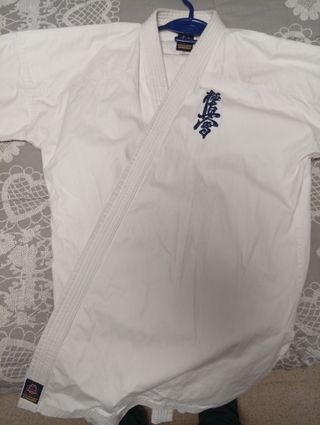Karategui Kyokushin KWF en buen estado. Solo usado 1 vez - Color blanco. - Talla única. - Logo de Kyokushin bordado en azul.