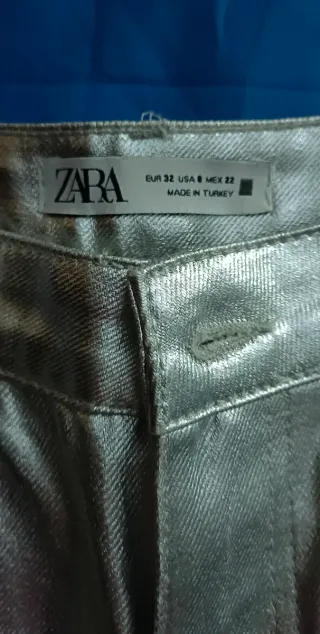 Pantalón de Zara con un llamativo acabado plateado. - Talla EUR 32.