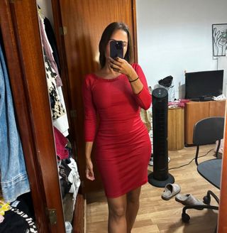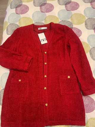 Sin estrenar, precioso un poco entallado, marca talla XL pero es como para una L. Largo 82, de sisa a sisa 52 y de cadera 56. Vestido de invierno de Zara en color rojo. Presenta un diseño elegante con botones dorados y bolsillos. - Tejido texturizado. - Cierre de botones. - Dos bolsillos frontales con detalle de botón.