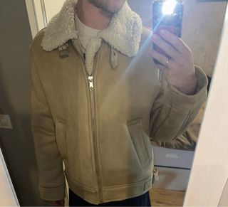 Solo hago ventas por envíos . Chaqueta estilo aviador con forro de borreguito. - Diseño de doble faz. - Cuello amplio con solapas. - Cierre de cremallera. - Puños y bajo con detalle de borreguito.