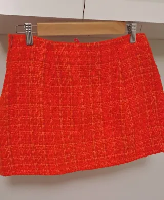 Minifalda de tejido tweed en vibrante color naranja. - Diseño de corte recto. - Textura distintiva del tweed.