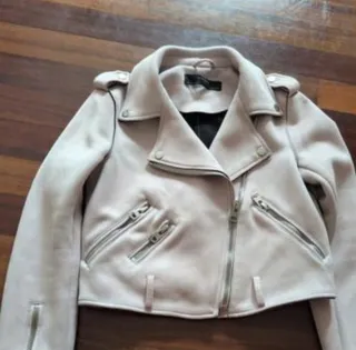 Cazadora estilo biker en color beige, rosa o mostaza - Diseño asimétrico con cremallera. - Bolsillos frontales con cremallera. - Cuello con solapas. - Puños con cremallera. Cada una 15€ Las 3 hago precio: 40€