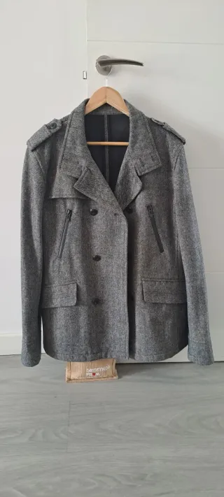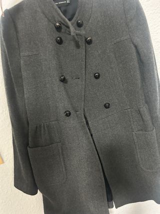 Chaqueta de paño de corte tres cuartos. Chaqueta con poco uso talla L o XL, marca zara, - Cuello solapa. - Cierre de doble botonadura. - Bolsillos frontales. - Hombreras decorativas.