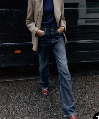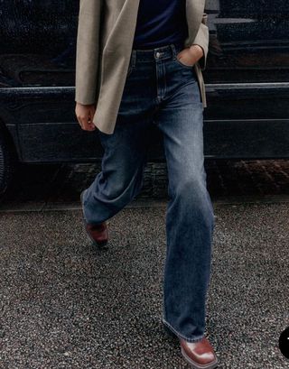 Pantalón vaquero de Zara. - Corte recto. - Tiro alto. - Lavado oscuro.