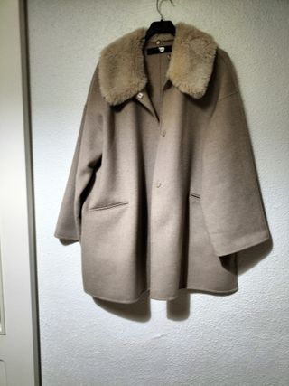 Elegante chaquetón de Zara en color beige, perfecto para el frío. - Cuello de pelo sintético. Este cuello se puede quitar. - Cierre de broches. - Bolsillos delanteros.