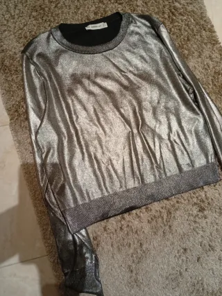 Jersey de Zara con un acabado brillante y metalizado. - Diseño de manga larga. - Cuello redondo. - Puños y bajo elásticos.