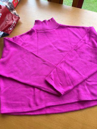 Jersey de Zara en color rosa. Impecable, talla S muy amplia. - Cuello redondo. - Manga larga. - Tejido de canalé.