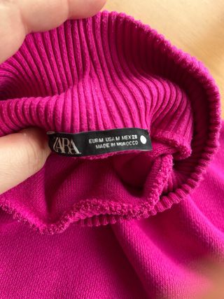 Jersey de Zara en color rosa, con cuello alto y manga larga. Un básico para tu armario. - Tejido suave y cómodo. - Diseño moderno y versátil.