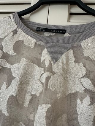 Sudadera de Zara con un diseño delicado de encaje floral. - Tejido principal de tul transparente con bordado floral. - Mangas largas. - Puños y bajo de punto canalé Es una talla S , talla pequeño