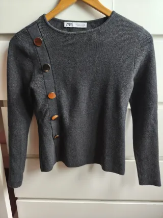 Jersey Zara mujer gris botones talla S