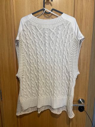 Chaleco de punto Zara con diseño trenzado. - Cuello en pico. - Sin mangas. - Bajo con detalle de tejido semitransparente.