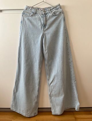 Pantalones vaqueros de Zara de corte ancho. Jeans culotte. Tiro alto. Pierna ancha. Lavado claro. Longitud 111cm largo de la entrepierna 81 cm