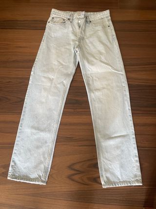 Vaqueros rectos de Zara en tono azul claro. Un básico versátil para cualquier armario. - Corte recto. - Tiro alto. - Lavado claro.