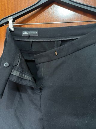 Conjunto de dos pantalones de la marca Zara en color negro y azul marino. - Diseño clásico y versátil. - Tejido cómodo y duradero. A uno de ellos le falta el gancho tipo botón pero se puede poner.
