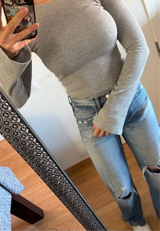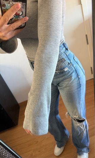 Camiseta de Zara con un diseño moderno y cómodo. - Tejido acanalado. - Mangas acampanadas. - Cuello redondo.