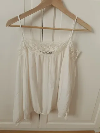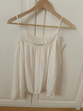 Bonita blusa estilo boho de Zara con detalles de encaje. - Diseño ligero y vaporoso. - Tirantes finos. - Adorno de encaje en el escote y los hombros.