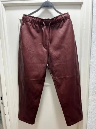 Pantalón de efecto piel con cintura elástica. - Cintura con cordón ajustable. - Bolsillos laterales. - Diseño de corte recto.