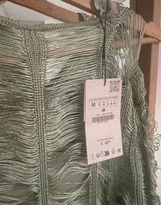 Vestido fiesta Zara flecos verde Talla M