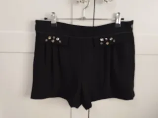 Shorts negros de Zara con detalles de pedrería. - Diseño con falsos bolsillos decorados. - Cremallera lateral