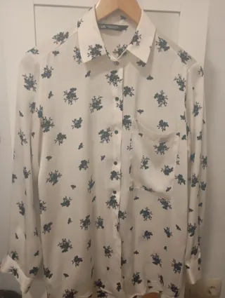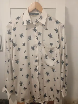Camisa de Zara con un diseño llamativo. - Detalle de hilos plateados en la parte delantera. - Cuello camisero clásico. - Cierre de botones.