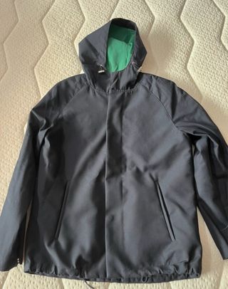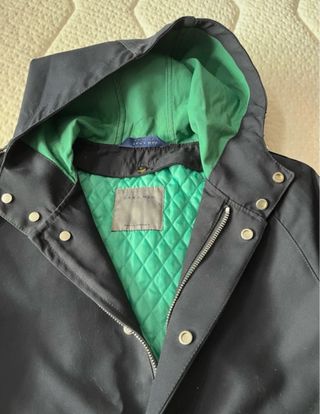 Chaqueta de Zara Man con un diseño moderno y versátil. - Color exterior azul. - Forro interior en color verde. - Capucha ajustable. - Bolsillos laterales. - Cordón en el bajo para ajustar.