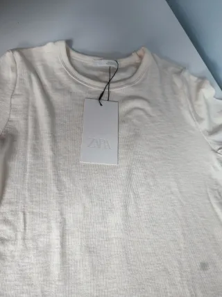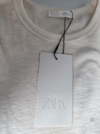 Camiseta de algodón de Zara, nueva y con etiqueta. - Pone talla L pero no es real, uso una S y queda bien. - Color beige. - Talla S.