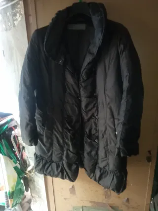 Abrigo acolchado con cuello alto y detalle fruncido.es plumas super calentito - Cierre de botones. - Bolsillos laterales. - Bajo con volante.mide largo 92 axilas 53