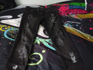 Vaqueros Zara negros con dibujos